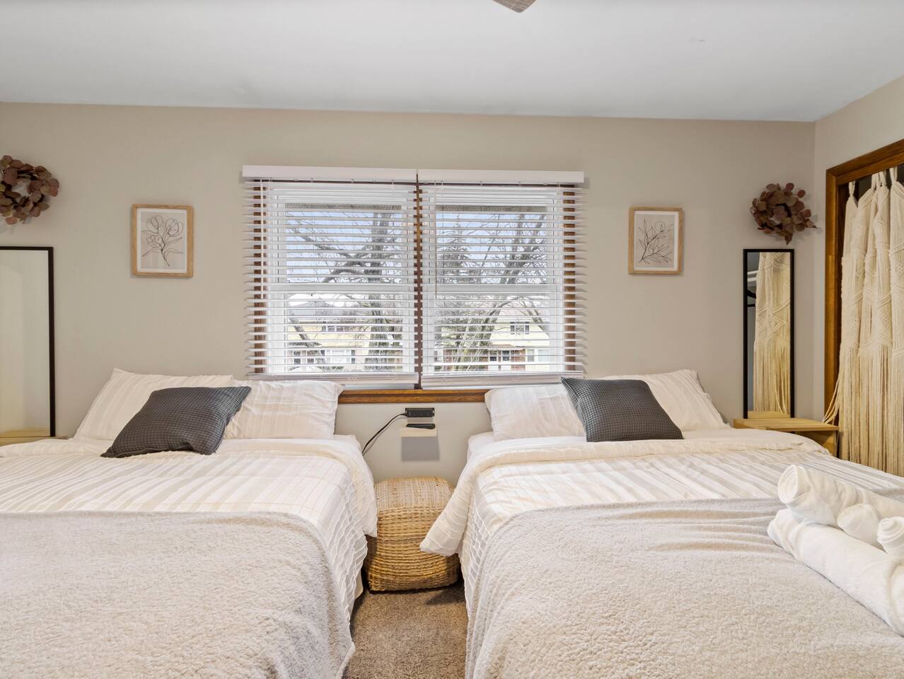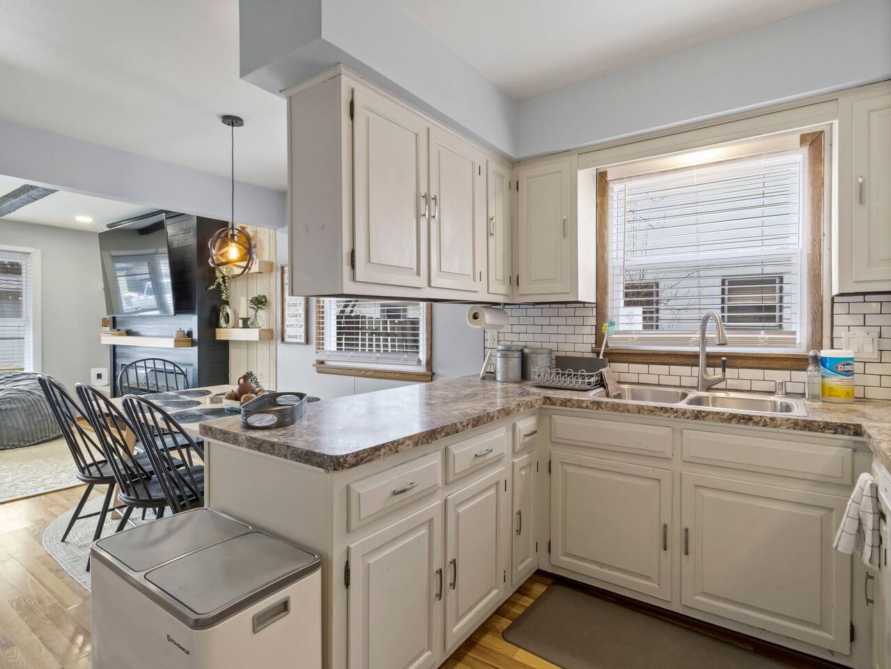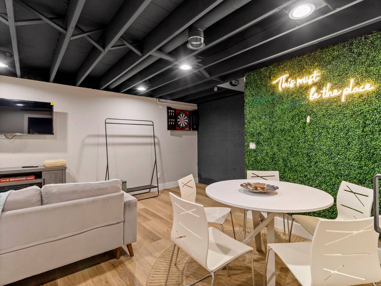 Welcome to Painted Porch Stays! Discover the perfect blend of comfort, style, and convenience in our beautifully appointed home nestled in the serene Florist Highlands. This charming residence features three tastefully decorated rooms with TV's and dedicated workspaces in each, complemented by additional sleeping options including a pullout couch in the living room, a sleeper sectional in the basement, and a crib for the little ones. Accommodations and Amenities: -Two private parking spaces for hassle-free arrivals. -One full and one half bathroom, fully stocked with toiletries to enhance your stay. -A fully equipped kitchen ready for cooking and hosting gatherings. -An expansive basement designed for leisure and entertainment, featuring a collection of board games, a poker table, a craft drink bar, a 5-string bass (you read right, the funk is here) , a record player, and yoga/meditation space. Location Highlights: -Minutes away from local dining, bars, shopping, and parks. -Easy access to the city's main attractions for an effortless exploration. -Suburban outskirt of city placing you close to all 3 major counties (Milwaukee, Waukesha, & Washington) Painted Porch Stays offers the perfect setting for a seamless blend of quality time, rest, and relaxation across several locations. Whether you're here for a family vacation, a business trip, or a special getaway, this is the place to be. Enjoy the tranquility and the vibrant local scene in equal measure.