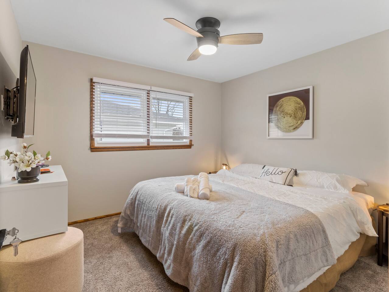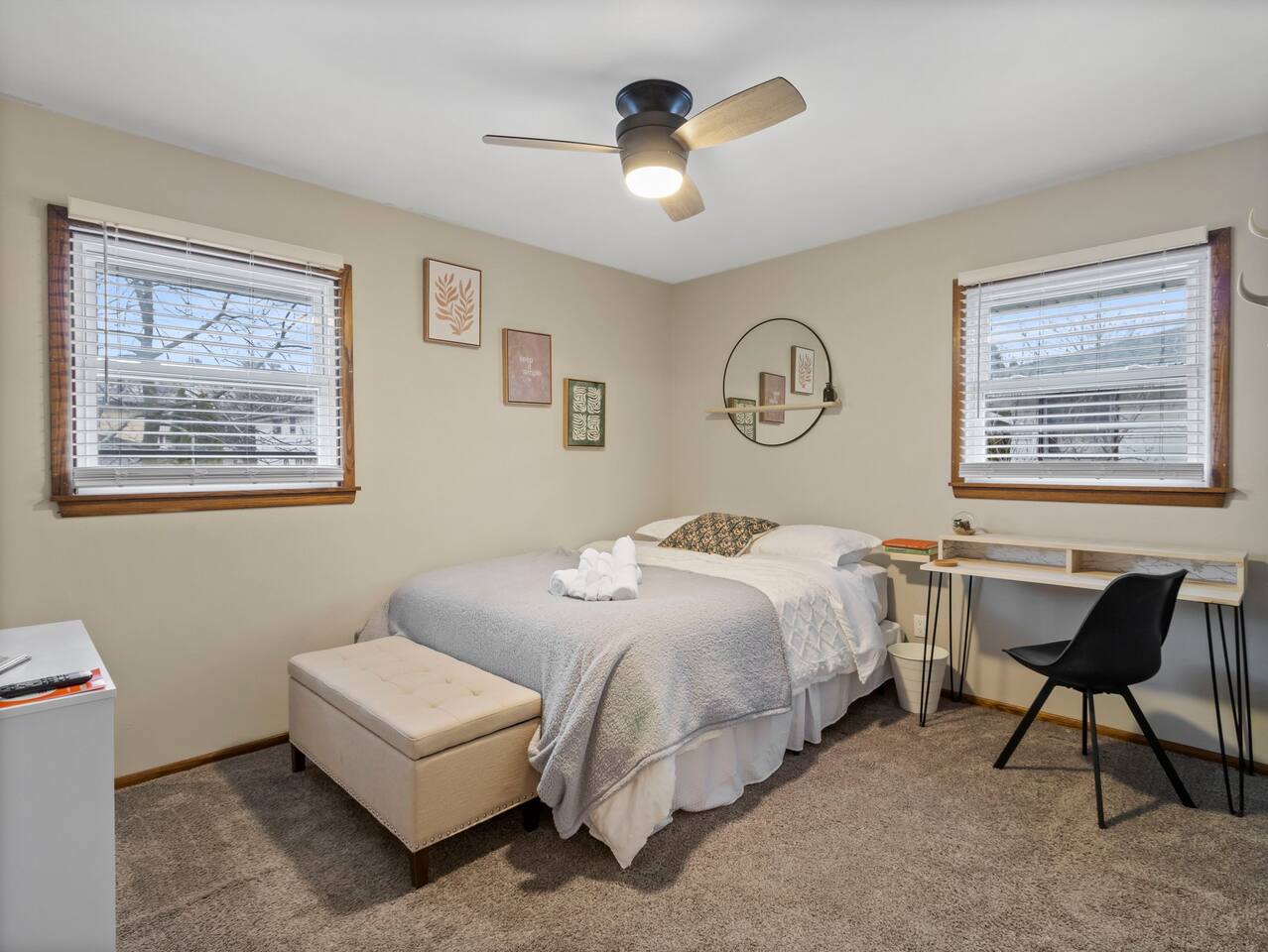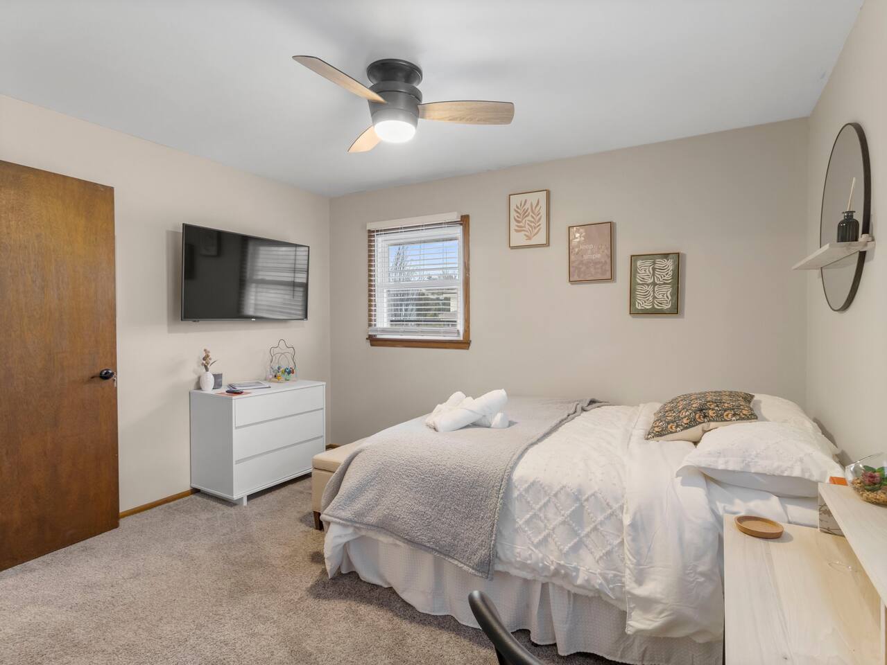 Welcome to Painted Porch Stays! Discover the perfect blend of comfort, style, and convenience in our beautifully appointed home nestled in the serene Florist Highlands. This charming residence features three tastefully decorated rooms with TV's and dedicated workspaces in each, complemented by additional sleeping options including a pullout couch in the living room, a sleeper sectional in the basement, and a crib for the little ones. Accommodations and Amenities: -Two private parking spaces for hassle-free arrivals. -One full and one half bathroom, fully stocked with toiletries to enhance your stay. -A fully equipped kitchen ready for cooking and hosting gatherings. -An expansive basement designed for leisure and entertainment, featuring a collection of board games, a poker table, a craft drink bar, a 5-string bass (you read right, the funk is here) , a record player, and yoga/meditation space. Location Highlights: -Minutes away from local dining, bars, shopping, and parks. -Easy access to the city's main attractions for an effortless exploration. -Suburban outskirt of city placing you close to all 3 major counties (Milwaukee, Waukesha, & Washington) Painted Porch Stays offers the perfect setting for a seamless blend of quality time, rest, and relaxation across several locations. Whether you're here for a family vacation, a business trip, or a special getaway, this is the place to be. Enjoy the tranquility and the vibrant local scene in equal measure.